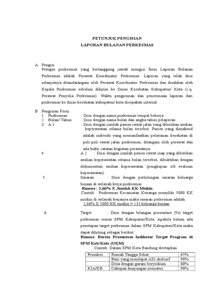 Petunjuk Pengisian Laporan Perkesmas Untuk Puskesmas Dan Dinkes Rev 8 Jan 2014 Doc