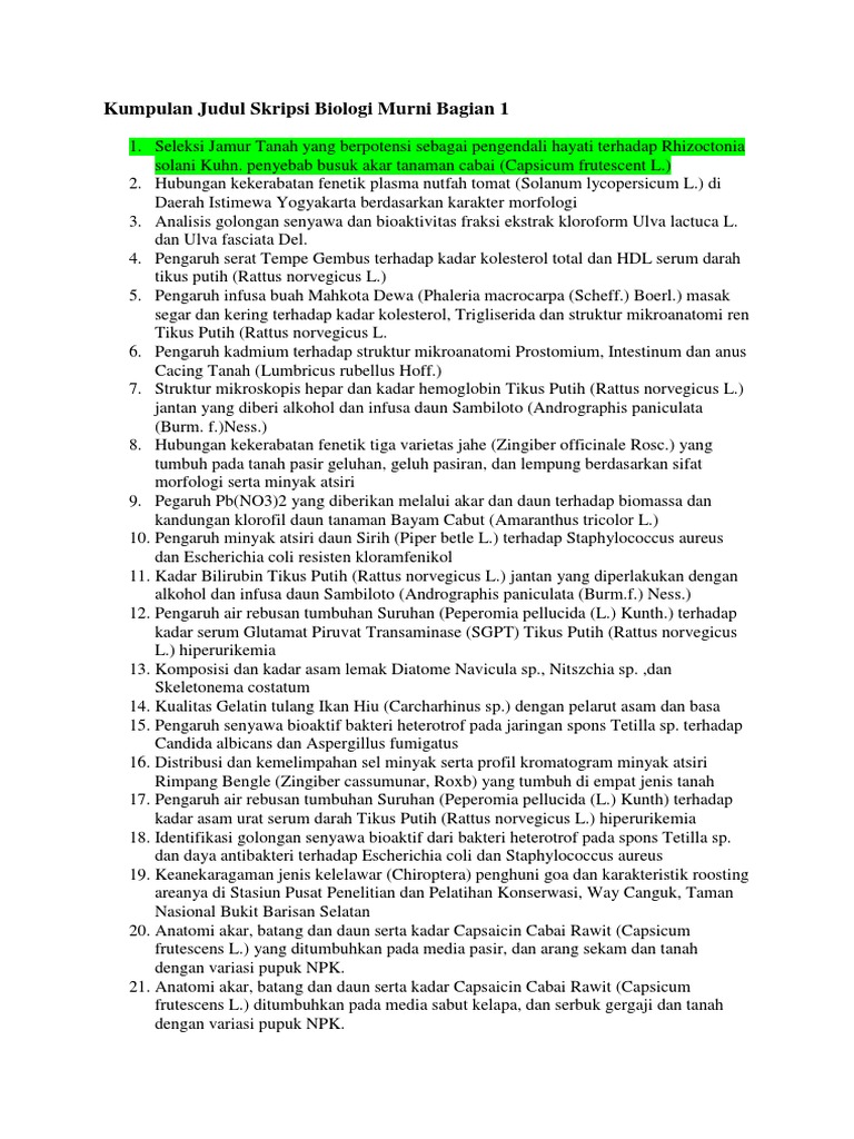 Kumpulan Judul Skripsi Biologi Murni Bagian 1 Docx